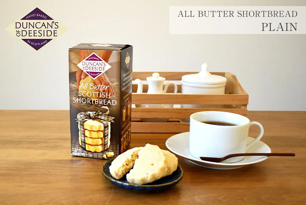 バターのなめらかさと口の中でとろける味わいを出すためにじっくり時間をかけて焼き上げたオリジナルショートブレッドです。 【DUNCAN'S of DEESIDE】(ダンカン) スコットランドの「ロイヤルディーサイド」(王族の避暑地)の山のふもとにお店を開いたDUNCANさんの母エリザベスから伝わる昔から変わらぬレシピで作られる美味しくて懐かしい味、イギリスのティータイムには欠かせないショートブレッド。 内容量 200g(8枚入り) 規格 ■原材料:画像を参照ください。 ■保存方法:直射日光・高温多湿を避けて保存して下さい。 ■規格補足:パッケージ:75mm×75mm×160mm 原産国:イギリス 注意事項 【賞味期限】 納品時3ヵ月以上 裏面表示画像に記載の賞味期限は、 実際に納品させて頂く現品の賞味期限とは異なります。 画像は表記方法のご参考としてご参照下さいませ。 ■ドロップ商品について こちらの商品は先行販売商品となり生産されない可能性や、減産となり納品されない可能性がございます。 その際は後ほど連絡の上、キャンセル処理をさせていただきます。 ※送料について ご注文時に先行予約商品と通常商品を合わせた下代合計が2万円(税抜)以上でも、 出荷日が異なる場合は、個々の下代合計となります。 それぞれ下代2万円(税抜)を下回る場合は個々に送料が掛かります。