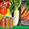 フルーツのような甘さのパプリカは手が止まらない美味しさ さっぱりとつまみやすいスティックタイプ スティックタイプで食べやすく、大根の白、人参のオレンジ、パプリカの赤と黄色。4色の鮮やかなビタミンカラーは食卓やお弁当を彩りよく仕上げてくれます。薄切りの豚肉で巻いて生姜醤油で焼くと、ピクルスの酸味がまろやかになって旨みがあふれてきます。 【参考栄養素】 ◎ビタミンACE(エース):抗酸化作用が高く、免疫力を高め、老化を防ぐビタミントリオのA,C,Eを含んでいます。 ◎ビタミンP(ヘスペリジン):柑橘類の皮などに多く含まれるポリフェノールの一種。毛細血管のケアやビタミンCを守る働きがあります。 ◎ビタミンC:皮膚や細胞のコラーゲンの合成に不可欠な栄養素。身体の酸化を防ぎ、免疫力を高め、風邪の予防や疲労回復に役立ちます。 【生産者】 人参:自然ファームハレトケ(札幌)  大根:自社農園  パプリカ:北海道サラダパプリカ(釧路)