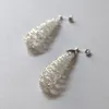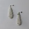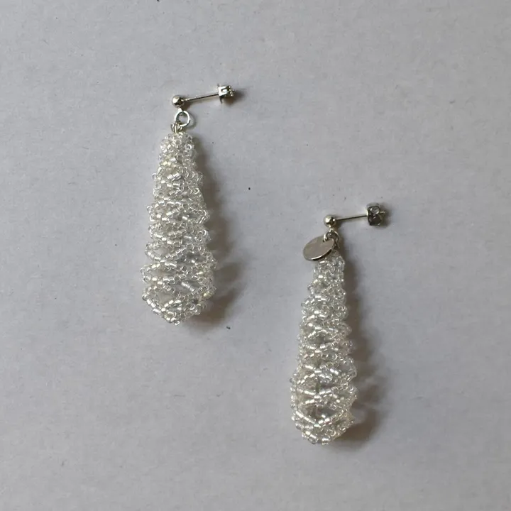“繭” 活動が停止または鈍い活動状態にある動物を包んで 保護する覆い また蚕(カイコ)の覆いは絹糸となる 自身を覆うものは自身によって産み出される 外界を遮断し 内側を静かに育てるかたちは 変わろうとする気配に寄り添うものです 美しい覆いを装いながら --- 光をふくんだ 金属のような 小さなガラスの粒 透明感と 静かなきらめきが 装いにそっと寄り添います シンプルなコーディネートにも自然に馴染む 空気を含んだ やわらかなかたち --- material SILVER925(ピアス金具)、SILVER925 ロジュームメッキ(イヤリング金具)、ガラスビーズ、真鍮、ステンレス、テグス size 約55x15mm weight 約2.5-3.5g *取り付ける金具によって、重さが異なります *CACICOの商品は全て1点1点制作しているため、個体差があり、商品写真と差がある場合がございます。ご了承の上、ご購入ください。 *金属アレルギーの方はご使用をお控えください