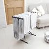 【折り畳めるバスタオルスタンド】 「室内干しのとき、バスタオルを干すスペースが足りない」そんなお悩みに応えるのが、この折り畳めるバスタオルスタンドです。 使いたいときにパッと広げられて、使わないときは省スペースにすっきり収納。洗濯まわりのストレスを減らしてくれる、頼れるアイテムです。 【コンパクトなのにたっぷり干せる】 スタンドを広げたときの横幅はわずか66cmと、省スペースで設置可能。洗濯バーは6本あり、バスタオルなら最大6枚、フェイスタオルなら12枚まで干せる仕様です。 開閉も数秒で完了し、毎日の洗濯が快適に。シンプルながらも実用性に優れた設計です。 【約1kgの軽量設計で持ち運びも快適】 重さは約1kgと軽量で、女性でも片手で楽に持ち運び可能。使用する場所を選ばず、必要な場所にさっと移動できます。 【折りたたむと厚みわずか7cmの省スペース設計】 使わないときは折りたたんで、洗濯機横や家具のすき間へすっきり収納。折り畳み時の厚みはわずか7cmと、収納場所に困らず、必要なときだけ広げて使えるのが魅力です。 【平干しスペースとしても活躍】 型崩れしやすいニットや枕、スニーカーなどを平干しするスペースとしても使用可能。タオルスタンドとしてだけでなく、衣類や小物の乾燥にも活躍します。 【生活空間に馴染む、ミニマルデザイン】 マットブラックとライトグレーの2色展開。無駄のないシンプルなフォルムと落ち着いた色味で、ランドリールームはもちろんリビングにも自然に馴染みます。生活感を抑え、スマートに洗濯物を干したい方にぴったりです。 【製品情報】 商品名: 折り畳めるバスタオルスタンド サイズ: [使用時]W66×D32.5×H70.5cm / [折り畳み時]W7×D32.5×H93.5cm 重量: 1kg 材質: [本体]スチール(粉体塗装)、[接合部]ポリエチレン、[キャップ]PVC 耐荷重: [全体]3kg / [バー1本]500g 原産国: 中国