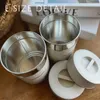 商品名 |ブリキ製オリジナルおやつ缶全種セット Sサイズ『yummy』Sサイズ『snacks』 Lサイズ『yummy』Lサイズ『snacks』 素材  |ブリキ板 内容量 |115g(S)172g(L) サイズ |W72mm × H152mm(S)      W111mm × H155mm(L) カラー |コットンホワイト×ゴールド 生産国 |日本 商品詳細 ━━━━━━ 明治28年創業、120年以上の歴史を持つ老舗茶筒メーカー『加藤製作所』とPOPPYS HOUSEがコラボしたブリキ製オリジナルおやつ缶が登場。 ナチュラルなコットンホワイトに上品なゴールドを纏った癒しモダンなデザイン。 昔ながらの製法で造ったブリキ製オリジナル缶は、一つ一つ職人による手作業で製造してるからこその温かみを感じられる仕上がりになっております。 ブリキ製の中蓋は製造できる職人の減少により、現在日本では2〜3社程度しか製造しておりません。 そんな中蓋付きのSサイズ缶は密閉度も高く、愛犬愛猫のチュールやおやつ、ジャーキーを保管したり、ご自身のお菓子やおつまみ、グラノーラ、パスタ、プロテイン、コーヒー豆、茶葉などの食品を保管するのに大変適しております。 Lサイズは大容量かつ手つきの蓋なので簡単に開け閉めする事ができるので、上記の食品はもちろんのこと、愛犬愛猫のドライフードを入れるのにとても適したブリキ缶となっております。 またSサイズLサイズともに、食品以外にもカトラリー、文房具、日用品を入れるなど、お好きな用途でお使い頂けます。 デザイン、クオリティー、機能性、使い勝手の良さ、全て兼ね備えたブリキ製オリジナルおやつ缶。 日本製の品質の良さ、手作りの温かさをぜひお確かめ下さい。 きっとお気に召して頂けるはずです。 お取り扱い ━━━━━━ ・水分がつくと錆びる恐れがありますので水洗いはしないで下さい。 使い始めは缶の内部を乾いた布で優しく拭いて下さい。 汚れた場合は水分をしっかり絞った布でふき取り、水分が残らないよう蓋をせずによく乾燥させてからお使い下さい。 ・水分を多く含む食品や塩分の多い食品は錆の原因になりますので、保存に適しません。 おつまみ類で塩分の多い食品は直接缶に接触しないよう、ビニール袋等何かに包んだ状態で保存して下さい。 ・完全密封容器ではありませんので、湿気を嫌うものを入れる場合は乾燥剤を入れてご使用下さい。 ・粘着性の高い市販のシール、テープを缶に貼ると、塗料が剥げてしまう恐れがありますのでご注意下さい。 備考 ━━━━━━ ・製品の材料であるブリキは現在食品用の缶詰に利用されているものと同一の素材ですので、食品保存上健康に問題ありません。 ・外蓋と中蓋が二重で湿気をさえぎり光を遮断する構造により、食品を長持ちさせることが可能となっております。 ・缶の蓋にわずかな凹みが生じていることがございますが、缶に塗装を施した後、キリのような道具を使いろくろから缶を移動した際の跡です。 不良ではございませんので、ご了承下さいますようお願い致します。 寄付について ━━━━━━ どんな小さな声も聞き逃さない。世界中の助けを求めている全ての動物を救えるように売上の10%を寄付してます(˘ᵕ˘ )♡