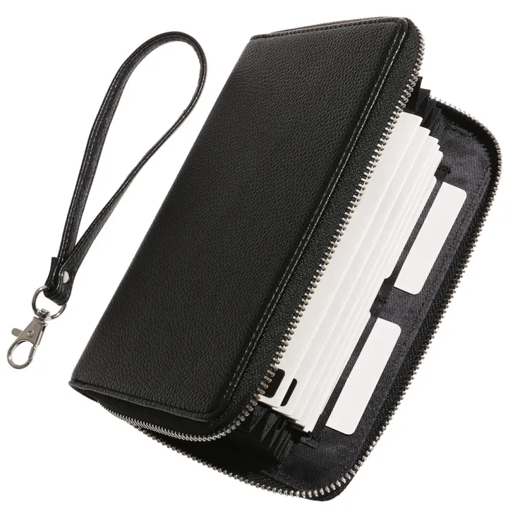 【通帳8冊カードも収納◎】じゃばら式通帳ケース ストラップ付き 大容量 / TC1 ロイヤルブラック