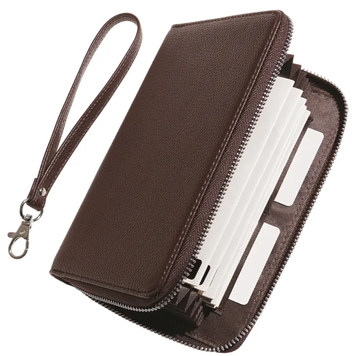 【通帳8冊カードも収納◎】じゃばら式通帳ケース ストラップ付き 大容量 / TC1 ブラウン