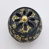 本品は三代にわたり盛金絵付け、青粒技法を継承する 伝統工芸士・三代仲田錦玉の手による香炉です。 一粒一粒を手で打つ青粒技法においては、通常、粒が不規則になりがちですが、錦玉氏の打つ粒は均一で渦状となり、作品に凜とした風格が備わります。 あらかじめ焼かれた磁器にムラ無く艶消しの黒い下地塗りを施して焼成。ベンガラで盛り上げるように文様を描き、その上に金泥をのせて再度焼成をする。金は滑りが悪く、滑らかに描くには高度な技術が不可欠。その後「いっちん」と呼ばれる道具を使い青粒を渦で描く「渦打」を施す。下絵は無く均一の粒を等間隔で落としていく技術はまさに神業といえるもの。飾るだけで部屋全体の気を高めてくれます。