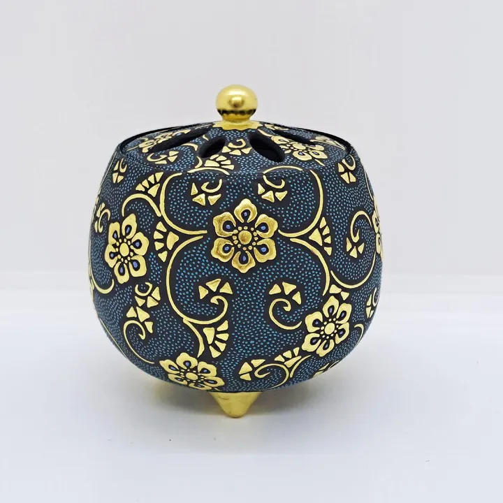九谷焼香炉/渦打青粒盛金宝相華文 【三代仲田錦玉】
