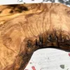 サイズ:約27×11~15×厚み1.5cm 重さ440g これこそ北アフリカの大自然アート、長い年月の間に厳しい自然と共に何百年も育った結果ですが、この作品は圧倒的に「見ごたえ」があります。目にするたびに喜びが湧き出るでしょう。 約500年の幹、一枚板からうまくとった画期的な「薄型」のまな板です!! *オリーブのです。北アフリカではオリーブの木は1000年近くも生きる不死身「聖なる木」とされます。 *オリーブの木を加工する前に天日干し2年以上、または丁寧な塩水漬けと乾燥炉1か月以上いれるという工程がありますが、こちらの「薄型」はもっともバランスよく乾燥に成功した板をつかって製作してもらっています。 オリーブの木のキッチン用品は1-2㎝の厚みが基本、密度が高く重いのが特徴でした、日本市場にでまわっているのも厚さ2㎝が基本です。薄型に加工できあがる前に、ヒビや割れがでてくるので薄型アイテムの中では中型の大きさです。 *薄型なので軽さがとりえです。キッチンで軽快に使ったり、テーブルウェアとして使ったり、楽しみ方は無限大。 少し歪あり。がたつきはフキンを敷くなどで軽減されます。 コンパクトな大きさは、卓上でパンやチーズ、オードブルやフルーツを盛り付けるのにちょうどいいサイズです。 ワインを片手にダイニングへ、生ハムなどの盛り付けにも。 そのままお皿としてご利用いただけます。軽いのでもちろんピクニックなどお外にも軽々ともっていくことができます。