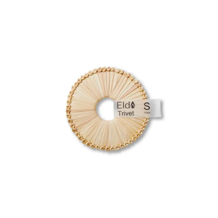 の笠から生まれたEldのためのトリベットは、熱々のEldを安定して置けるようにぴったりサイズに作った鍋敷きです。 江戸時代の旅支度に欠かせなかった編み笠の材料”菅(スゲ)”が使われており、かつて釜敷きにも使われた菅は熱に強く、防水透湿性も非常に高い素材です。 水が降りかかると撥水性のある繊維がはじき、湿気が多ければ編んだ菅が膨らんで内部に通さず、乾燥すれば菅が戻り、自然に風通しが良くなる優れもの。 ご家庭に合わせて使いやすいサイズとお好みのカラーをお選びいただけます。 EldスキレットSやソースパンに最適なSサイズ。 馴染みやすいベージュ色であるプレーンと本来の色が楽しめるグラスの無地2色は、素材感がお好みの方にお勧めです。 深江菅細工 大阪は深江の伝統工芸品で、江戸時代の旅支度に欠かせなかった編み笠の材料”菅(スゲ)”。 手作業で丁寧に編み込まれた編み目、昔ながらの技法で染められた差し色は、ひとつひとつ風合いが異なり、使い込むほどに愛着がわく逸品です。かつて釜敷きにも使われた菅は熱に強く、防水透湿性も非常に高い素材です。 菅本来の色が楽しめるプレーン2種類の他、ポトペリーオリジナルカラーのグレーとグリーンがございます。