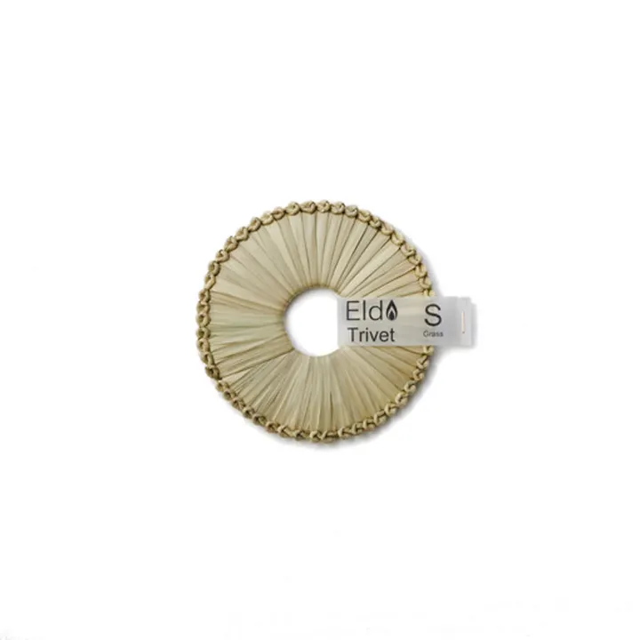 の笠から生まれたEldのためのトリベットは、熱々のEldを安定して置けるようにぴったりサイズに作った鍋敷きです。 江戸時代の旅支度に欠かせなかった編み笠の材料”菅(スゲ)”が使われており、かつて釜敷きにも使われた菅は熱に強く、防水透湿性も非常に高い素材です。 水が降りかかると撥水性のある繊維がはじき、湿気が多ければ編んだ菅が膨らんで内部に通さず、乾燥すれば菅が戻り、自然に風通しが良くなる優れもの。 ご家庭に合わせて使いやすいサイズとお好みのカラーをお選びいただけます。 EldスキレットSやソースパンに最適なSサイズ。 馴染みやすいベージュ色であるプレーンと本来の色が楽しめるグラスの無地2色は、素材感がお好みの方にお勧めです。 深江菅細工 大阪は深江の伝統工芸品で、江戸時代の旅支度に欠かせなかった編み笠の材料”菅(スゲ)”。 手作業で丁寧に編み込まれた編み目、昔ながらの技法で染められた差し色は、ひとつひとつ風合いが異なり、使い込むほどに愛着がわく逸品です。かつて釜敷きにも使われた菅は熱に強く、防水透湿性も非常に高い素材です。 菅本来の色が楽しめるプレーン2種類の他、ポトペリーオリジナルカラーのグレーとグリーンがございます。