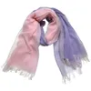 1枚のストールの中で異なる色が幾重にも重なって見えるこちらの2重織ストールは、縫製して2重にしているのではなく、あくまで織りによって2枚重ねを表現しているこだわりの日本製ストールです。縫製しているわけでは無いので、重なっている部分が厚くならず、柔らかい巻き心地はそのままです。また、同系色のグラデーションで織られているので、自然な感じで重なり合い、細番手の糸を使用しているので、エアリー感がありとても爽やかです。重ね合う色の出し方によって、違った雰囲気も作れて、一石二鳥にも三鳥にもなりそうです。