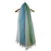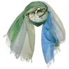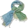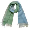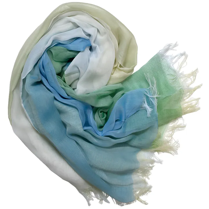 1枚のストールの中で異なる色が幾重にも重なって見えるこちらの2重織ストールは、縫製して2重にしているのではなく、あくまで織りによって2枚重ねを表現しているこだわりの日本製ストールです。縫製しているわけでは無いので、重なっている部分が厚くならず、柔らかい巻き心地はそのままです。また、同系色のグラデーションで織られているので、自然な感じで重なり合い、細番手の糸を使用しているので、エアリー感がありとても爽やかです。重ね合う色の出し方によって、違った雰囲気も作れて、一石二鳥にも三鳥にもなりそうです。