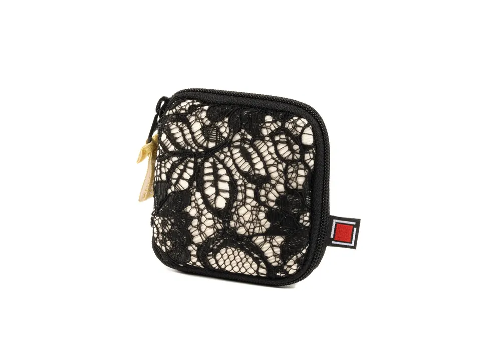 繊細なレースが上品さを際立たせるポーチシリーズ。太さの異なるマットブラック糸を組み合わせて表情豊かに編んだレース柄は、一般的なレースよりもコントラストのある表現力が特徴。 ベース生地の明るく華やかな色調のシャンパンゴールドとの組み合わせにより、品のある美しさが際立つデザインになっています。裏地には表の雰囲気に合わせて、落ち着いたアイスブルーを使用しており、シンプルでシーズンレスです。 旅先へ、お出かけ中にちょっと外出したいときのために、大切なアクセサリーを優しく守り、コンパクトに持ち運ぶことが出来ます。 ファスナーを開けると見開きになっており、中の仕切りごとに、それぞれアクセサリーを分けて収納可能です。 左面にはフラップポケット、真ん中には面ファスナー付きのポケットがあり、小さなアイテムを収納しやすく、取り出しやすくなっています。 右面上部には伸縮する素材のメッシュポケットが2つあり、小さなアイテムを入れたり、ピアスを止めることも可能です。 右面下部にはリングホルダー。スエード調の起毛素材のため、アクセサリーを優しく守り金属のリングも傷つけにくいつくりです。