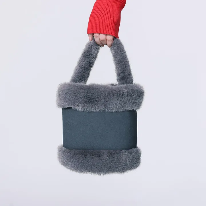 上品なフェイクムートンとミンクタイプファーのバッグ BE