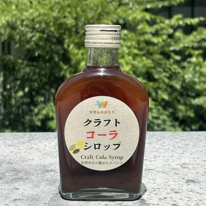 原材料や製造方法などにこだわって作った「クラフトコーラシロップ」 身体によいスパイス類やハーブ類と果汁が入った完全無添加商品です。 果汁はすべて国産原料で世界中から集めたスパイスを使用し、糖類にもこだわりました。 クラフトコーラシロップの中では果汁の配合率が多めでスッキリとした味にしました。 【飲み方】3~5倍のお好みで割ってお飲みください。 従来のコーラのような清涼感を味わいたいなら炭酸水で割ってみましょう。 「クラフトコーラシロップ」と炭酸水の量を調節して、自分だけのオリジナルコーラを作ってみてはいかがでしょうか。 また、牛乳やお酒と混ぜてカクテルを使ったり、さまざまなアレンジで自分だけの味を見つけられるのが魅力です。 おすすめの飲み方をご紹介・・・ ●牛乳で割ると《インド式 ミルクティー・チャイ》 ◆牛乳を豆乳に変えると《ヘルシーなミルクティー》に‼ ●定番のウイスキーとクラフトコーラシロップで《コークハイ》 ●ラムとクラフトコーラシロップで《ラムコーク》 ●ココナッツリキュール(マリブ)とクラフトコーラシロップで《マリブコーラ》 自宅だけでなく、野外に持ち出してキャンプやアウトドアでも楽しめます。 さまざまな業種・業界スタイルに合わせて、いろいろな提供方法が可能です! 【ラベルに関しまして】 当社のラベル付き/ラベルなし いずれの形でもご用意可能です。(ラベルなしの商品ページございますのでそちらでご購入ください)