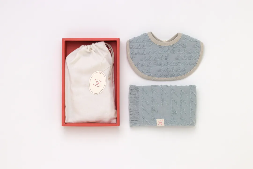 tinymame(タイニーマメ)は、愛媛県今治市のテキスタイルメーカー・ 渡辺パイル発の、ベビー&キッズ向けブランドです。 素材には良質なオーガニックコットンを100%使用。瀬戸内の豊かな自然をモチーフにした完全オリジナルのテキスタイルを自社工場で織っています。 タオルはもちろん、小さな子どものいる毎日に欠かせないアイテムを展開しています。 ベビーの成長に寄り添うアイテムをセットにした「hello baby gift」 お揃いのアイテムでコーディネートをお楽しみいただけるとびきり可愛い贈り物です。ご自身のお子さんや、大切な方へのプレゼントにおすすめです。 ●swim柄に込めた思い Happiness comes in waves to find you. 幸せは波みたいにきみのところに押し寄せるよ。 ●swim柄のモチーフ 穏やかに子供たちの暮らしを見守ってくれる私たちの暮らす瀬戸内の海。太陽のもと海の表面がゆらゆらときらめく様子をモチーフに。