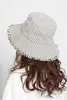 春夏らしいストライプ生地を使用したバケットハット。ツバ先はフリンジデザインとなっています。爽やかな被り心地でさり気なく目を惹くアイテムです。帽子の内側(汗どめ裏側部分)にアジャスターが付いています。