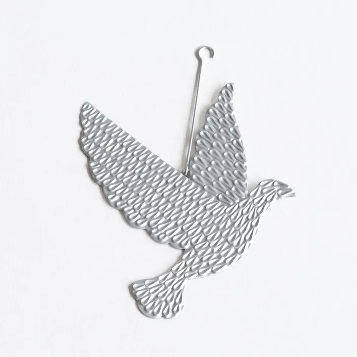 飾ったり添えたり エンボス ブリキオーナメント ハト Lサイズ SL(シルバー)