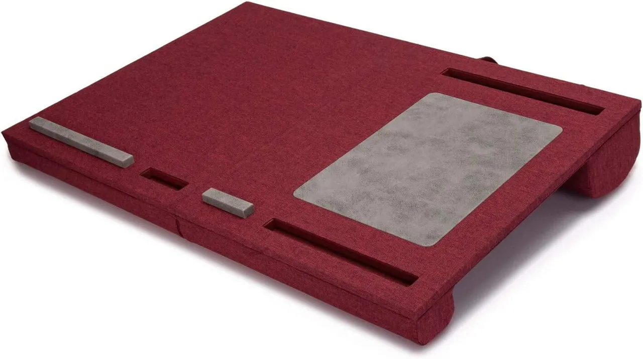 【ワンタッチで折りたためてコンパクト収納】 インテリアにもなじむファブリック素材を使った膝上テーブルです。 15.6インチまでのノートパソコンやタブレットに対応しています。 ※ご利用のノートパソコンやタブレット本体のサイズによっては、マウスパッド部に本体が重なってしまう場合があります。 “傾斜付きクッションテーブル” ・しっかりとしたクッション性能で、ノートパソコンやタブレットを置いての作業を快適に行えます。 ・デスクではなく、リビングのソファなどに座りながらのパソコン作業の際に便利です。 “スマートフォンスタンド機能・マウスパッド付き” ・ストッパーがあるので縦にも横にもスマートフォンを置くことができます。 ・PC作業中でも通知や電話を見逃すことはありません。 ・マウスパッドも付いているので、快適なマウス操作ができます。 “折りたたんで収納がかんたんに” ・使用しない際は、折りたたむことができるので収納もかんたん。 ・取手ハンドル付きで持ち運びにも便利です。