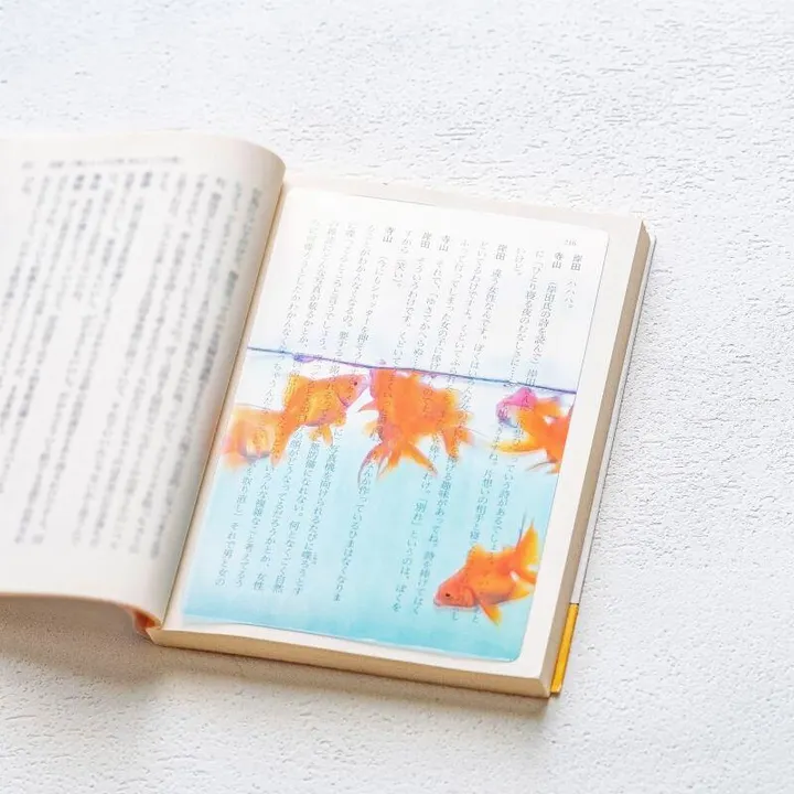 撮影した写真をPET素材に印刷した透明な栞。本に挟むと下地が透けて、文字の世界を鮮やかに彩ります。