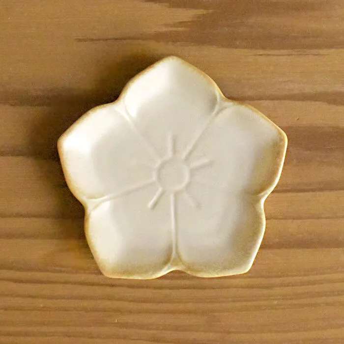 楽 線刻豆皿 桔梗 ベージュマット 15365