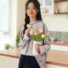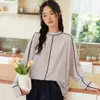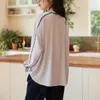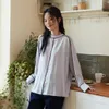 配色パイピングシャドーストライプ長袖ブラウス薄手素材KNST340 PURPLE/FREE
