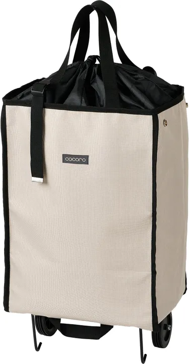 ・デザインにこだわったワンランク上の新しいハンディトートカートです。 ・今風の配色パイピングがアクセントになっています。また長めにとったテープとテープの端の先止め金具もおしゃれポイントです。 ・取っ手にアジャスターをつけることで、自分の身長に合わせて取っ手の長さを調整できるのでカートを引きやすくなりました。 ・タイヤも前回のデザインよりも大きくし、安定性を向上させました。