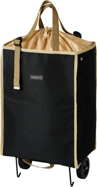 ・デザインにこだわったワンランク上の新しいハンディトートカートです。 ・今風の配色パイピングがアクセントになっています。また長めにとったテープとテープの端の先止め金具もおしゃれポイントです。 ・取っ手にアジャスターをつけることで、自分の身長に合わせて取っ手の長さを調整できるのでカートを引きやすくなりました。 ・タイヤも前回のデザインよりも大きくし、安定性を向上させました。