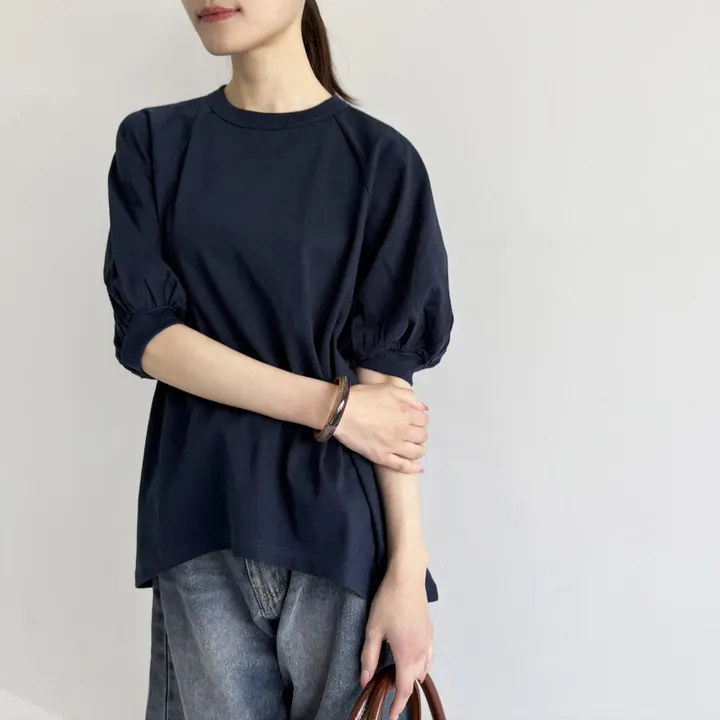 【日本製】USAコットン バルーンスリーブ プルオーバー ネイビー