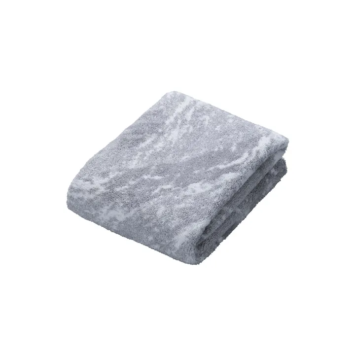 落ち着いたネイビーとグレーの色をベースにした、爽やかで大人っぽいマーブル柄のマイクロファイバータオル「カラリマーブル(Marble)」 洗顔後の濡れた顔も、触れるだけでサッと吸水。持ち歩きしやすいサイズなので、ジムやアウトドアにもおすすめです。ジメジメした梅雨の時期や真冬の洗濯でも乾きやすいので、お洗濯も楽々です。 【綿の3.6倍の吸水力】水に触れた瞬間、サッと吸水してくれます。その吸水力はなんと綿のタオルの3.6倍!まるでタオルが肌に吸い付くように、水分をしっかり吸水してくれます。摩擦による肌や髪へのダメージ軽減にもなり、タオルドライの時短になります。 【安心の速乾性】マイクロファイバーは、1本1本が放射線状の三角断面形状で無数の隙間を持っています。その隙間に大量の水分を吸水し、絞るとすぐに吸水力が戻ります。 【もっちり肌触り】通常織りあがったタオルは両面ともパイル状になっているため、引っかかりやすい。表面を刈り取っているため引っかかりにくく、上質で滑らかな肌触りに。