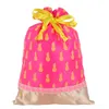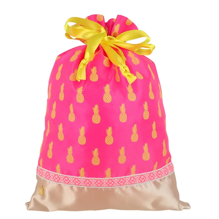 夏らしいパイナップルのPOPな柄が可愛い巾着ポーチは内側に仕切りもあって使いやすい! 小さなパイナップルのチャーム付き♪