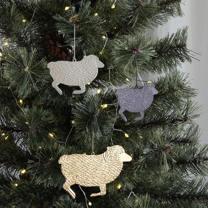 くるくるの角が可愛いらしい羊モチーフのオーナメント。 表面に凹凸をつけるエンボス加工を表面に施しているので、陰影が出来て立体感のある表情が生まれます。 ツリーに飾ったり、壁やフックに飾って楽しむ以外に、プレゼントのラッピングに添えてギフトと一緒にプレゼントとするのもおすすめです。 ※SサイズGL完売 ブリキ(BLIK)は、錫(TIN)でメッキを施した鉄板で、錆びないように薄いスズの膜で鉄板を処理し、表面を織り上げたものを指します。 ブリキ素材は、美しい表面と強固な耐久性を持つため、家具や装飾品などの家庭用品としてよく用いられます。 また、オイルやペイントなどで仕上げることで、手触りも良くなり、防水や防塵の性質も備えています。 職人によるハンドメイドで生産しています。 【インテリア】【雑貨】【クリスマス】【動物/アニマル】【羊】
