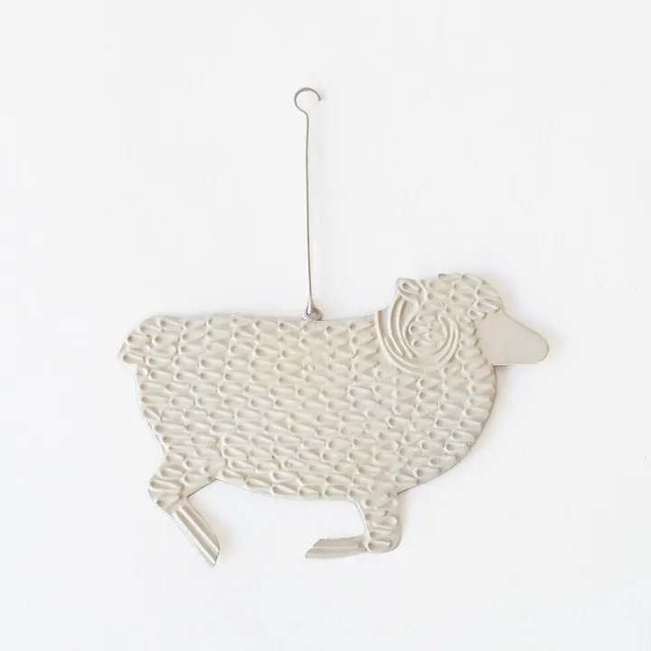 飾ったり添えたり エンボス ブリキオーナメント 羊 Lサイズ IV(アイボリー)