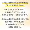 アクアモイスチャークレンジング:水、プロパンジオール、コカミドプロピルベタイン、メチルパーフルオロブチルエーテル、メチルパーフルオロイソブチルエーテル、ラウリルグルコシド、ココイルグリシンK、キサンタンガム、(アクリレーツ / アクリル酸アルキル(C10-30))クロスポリマー、水酸化Na、フェノキシエタノール ナチュラルフェイスソープ:石鹸素地、カリ含有石ケン素地、水、パーム脂肪酸、グリセリン、タルク、パーム核脂肪酸、サピンヅストリホリアツス果実エキス、カオリン、炭、グリチルリチン酸2K、スクワラン、トレハロース、ポリクオタニウム-51、コーンスターチ、セルロースガム、コカミドプロピルベタイン、塩化Na、グルコン酸Na、ミリスチン酸、パルミチン酸、ラウリン酸、ヒドロキシプロピルデンプンリン酸、ラウロイルリシン、グアーヒドロキシプロピルトリモニウムクロリド、EDTA-4Na、エチドロン酸4Na アクアモイスチャーピーリング:水、グリセリン、(アクリレーツ/アクリル酸アルキル(C10-30))クロスポリマー、ジココジモニウムクロリド、ステアルトリモニウムブロミド、ヒアルロン酸Na、グリチルリチン酸2K、ペクチン、ラウリルベタイン、スクロース、イソプロパノール アクアモイスチャーゲル:水、グリセリン、BG、スクワラン、ホホバ種子油、ツバキ種子油、シロキクラゲ多糖体、ラウロイルグルタミン酸ジ(フィトステリル/オクチルドデシル)、乳酸桿菌、マルトデキストリン、セラミドNG、セラミドNP、セラミドAP、加水分解ヒアルロン酸、加水分解コラーゲン、シグリセリン、水添レシチン、グリチルレチン酸ステアリル、アラントイン、コンフリー葉エキス、フィトステロールズ、カルボマー、水酸化K、ペンテト酸5Na、フェノキシエタノール、メチルパラベン、トコフェロール ※「肌〇」は、原材料に表示する義務がないとされる「キャリーオーバー」の成分まですべての情報を開示しています。すべてをみなさまにお伝えすることで、気持ちよく使っていただけるようにしています。ご自身のお肌に合わないものが入っていないかをご確認いただき、成分の内容で気になるものがありましたらお気軽にお問合せください。敏感肌や乾燥が気になる方、ご家族で使ってくださっている方が多いのが特長です。