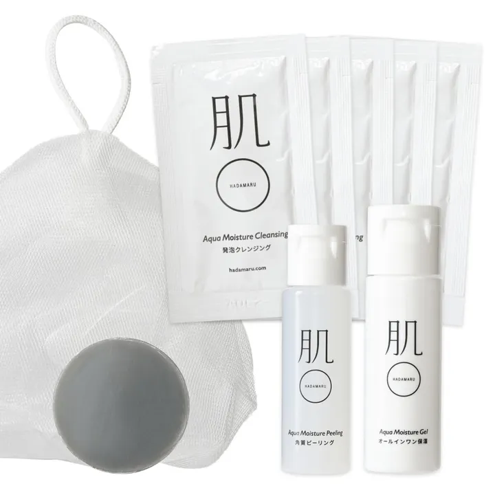敏感肌や肌荒れで悩んでいる方に、納得してから使い続けてほしい。 敏感肌や肌荒れで悩んでいる方にとって、新しいスキンケアを試すのは勇気がいること。 「本当に自分の肌に合うのか不安」「使って後悔したくない」 そんなお気持ちに寄り添い、肌◯ではトライアルをご用意しています。 肌にいい成分だけの商品を使っても肌の状態により千差万別。 まずは納得いただくまでお試しください。 ■アクアモイスチャークレンジング 「肌にやさしい洗浄剤」と「自己発泡して吸着するクリーミー泡」を組み合わせることで肌を守りつつ、 メイクと毛穴の奥の汚れをきれいに落とす敏感肌用クレンジング。 ■ナチュラルフェイスソープ 泡立ち5秒、肌のせ1秒。炭と粘土が毛穴の汚れをやさしく吸着。 うるおいを守って洗う、敏感肌想いの泥炭吸着泡洗顔。敏感肌にも使いやすい設計、弱アルカリ性。 ■アクアモイスチャーピーリング 吸着して落とす、肌へのやさしさに配慮した処方設計。 肌のうるおいを残して、やさしく落とす角質ケア。 ■アクアモイスチャーゲル 「ヒト型セラミド(※1)」3種+「コメ由来乳酸菌(※2)」配合。うるおいを守って、やさしくケア。 化粧水、乳液、クリーム、パック、下地の役割をすべてひとつで果たす1本5役のオールインワンゲル。 ※1:保湿成分 ※2:皮膚コンディショニング成分