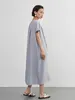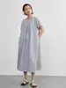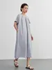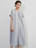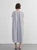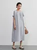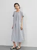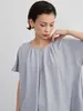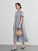 KNXO404-半袖タックワンピース・ゆとりシルエット・前開きライン入り素材きれいめワンピ GRAY/FREE