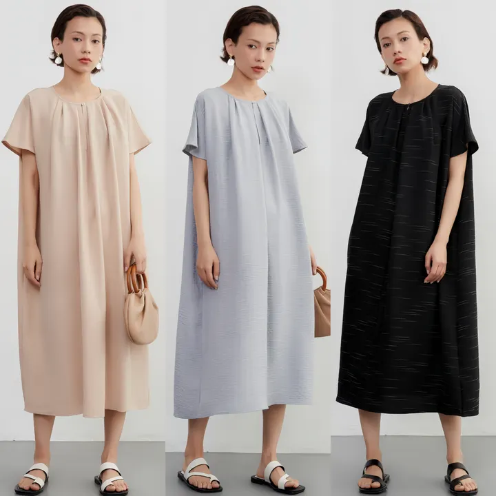 これからの季節にぴったりな半袖デザインが、涼しげで爽やかな印象を与えます。シーズンに合わせて気軽におしゃれを楽しめます。快適な着心地を追求したゆとりのあるシルエットが、動きやすくリラックス感を提供。体型を拘束せずに、自由なスタイリングが可能です。 生地の特徴: 肌触りの良い涼やかな素材が使用されており、暑い季節でも快適に着用できます。通気性があり、さらりとした感触が夏の日にぴったりです。 コーディネートの提案: カジュアルスタイル: カジュアルなデイリーコーデには、スニーカーやフラットサンダルと合わせて軽やかな印象を演出。トートバッグやサングラスでアクセントを加えましょう。 オフィスルック: オフィスでの着こなしには、クラシックなパンプスやヒールサンダルと組み合わせて、ビジネスカジュアルな雰囲気を醸し出します。ブレザーやカーディガンできちんと感をプラス。 デートやお出かけ: デートやおしゃれな場所には、ウェッジソールのサンダルやストラップヒールと合わせて、女性らしいスタイルをアピール。ショルダーバッグや小さなアクセサリーでこなれ感を演出します。 この半袖タックワンピース・ゆとりシルエット・ライン入り素材ワンピは、その着まわしの利くデザインと快適な素材で、様々な場面で活躍すること間違いなしです。自由なファッションの楽しさを存分に味わってください。 #ワンピース#半袖#フレアスリーブ#ドレープ#シワになりにくい#ポリエステル#夏