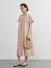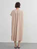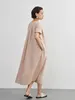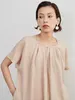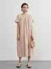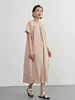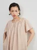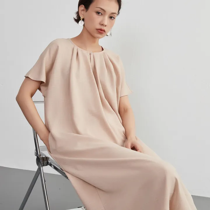 KNXO404-半袖タックワンピース・ゆとりシルエット・前開きライン入り素材きれいめワンピ BEIGE/FREE