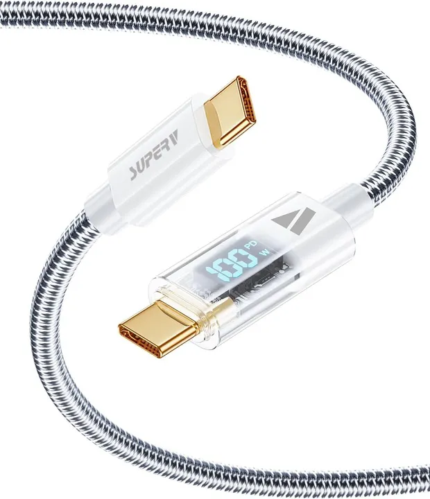 SUPERV Rt4 急速充電 USB C to C ケーブル [100W PD対応 30cm] LEDディスプレイ内蔵 iPhone Android 各種 ホワイト