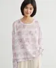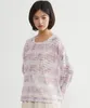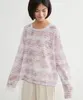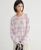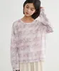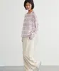 KNR647・麻混ラッセル素材太ボーダー長袖プルオーバー秋冬カジュアル FREE/PURPLE