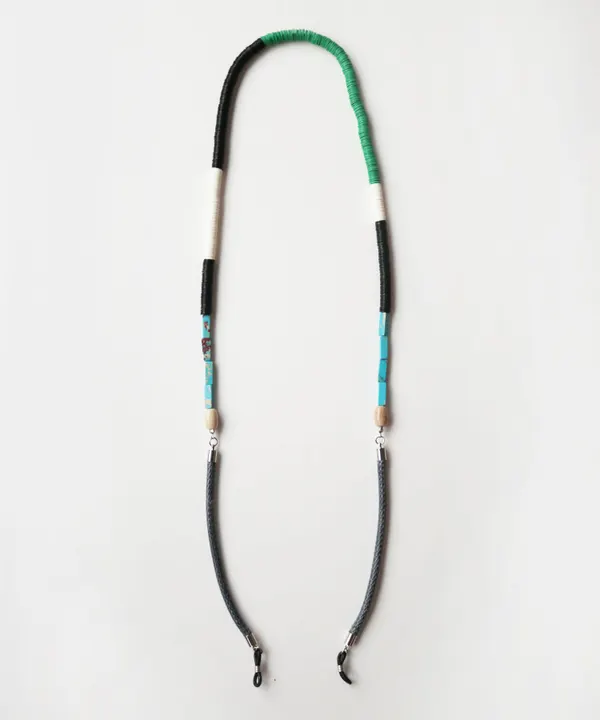 天然石ビーズ使用のハイセンスなグラスコード ・天然石ビーズ、ウッドビーズ使用 ・顔に触れやすいコード部分は 汚れにくいコーティング加工のものを採用