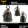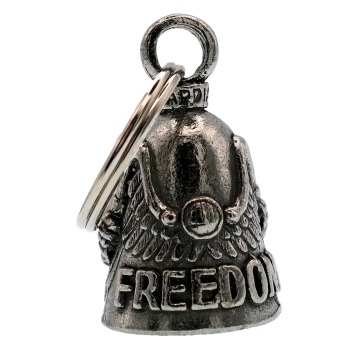アメリカ製ガーディアンベル社製ガーディアンベルです。 MADE IN USA アメリカ製 交通安全 魔除け 御守り ガーディアンベル アメリカのライダーの間には、事故や、転倒の原因は「道路にひそむ悪魔」によるいたずらだという伝説があります。悪魔は走る者に悪戯やトラブルを運んできます。このベルは美しい音色で悪魔たちを追い払うと言われ愛されています。そんな悪魔のいたずらを防ぎ、御守りとなるのが、守護者のベルという意味を持つガーディアンベル。 日本でも鈴の音(ね)は神道では魔除けの音と言われています。ピューター製の鈴でいい音色でガーディアンベルはデザインも様々あります。 またガーディアンベルにまつわる伝説として、プレゼントとして送られたベルの効果は、自分で手に入れたものの2倍になると言われています。 それゆえに彼氏・彼女・友達・家族へのプレゼントとしての人気も非常に高まっています。 シルバーアクセサリーのようにおしゃれに装着できて素敵な音色を奏でるガーディアンベル。 バイカー以外にも自転車や旅・交通安全のお守りとしてお使いいただけます。 カバン・ランドセル・キーホルダー・ペットの首輪等に付けてお使いください!! ※タイラップ等でバイクのフレームにも簡単に取り付けできます。 アメリカンモデルだけではなく、旧車ファン、レプリカライダーまで、さらにバイクだけでなく、自転車や車にもピッタリな御守りとなっています。 アクセサリーとしても人気で、アイディア次第で車体だけでなく、キーホルダーや鞄など、どこにでも付けておしゃれに楽しめます。