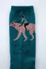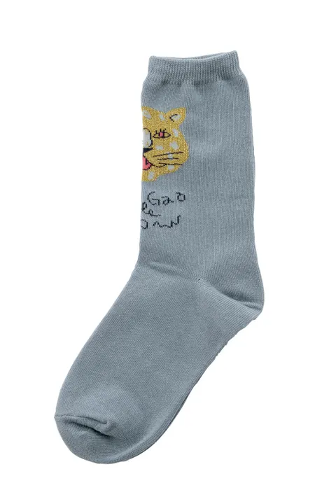 ちょっと元気のない日には、”くせ強”のくすっと笑えるソックスで、テンションを上げていきましょう! かわいい生き物の刺繍がちょこっと飛び出たものや、左右でデザインの違うもの、はたまたラメ糸を使ったキラキラの一足など、個性的なソックスを作りました。 2足1セットで帯巻きでお届けします。足元がポイントの着こなしにおススメです。 *NAMAKEMONO(なまけもの)/ダラダラしても許してほしいと訴えるときに履いてみたい。 よく見るとヨダレが出ています。 *TONDEMITA(飛んでみたシリーズ)/ペンギンやカメ、カエルにサルが飛んでみてます。 *KATTE NI TSUKAUNA(勝手につかうな)/羊の毛でセーターが編まれています。 「勝手に使うな」と申しています。 *KUTSUSHITA WO YOKOSE(靴下をよこせ)/犬が靴下にかなり執着の様子。 「靴下をよこせ」だそう。尻尾は振っているようですが。 *ITTAN OCHITSUKE(一旦落ち着けシリーズ)/ワニに狙われた小鳥の一言。 てんぱって口からビームを発する怪獣に向けての一言。 また、抵抗虚しくズルズル落ちていくネコ。そんな時もあるさ。 さあ、みんな「一旦落ち着け」 *ガウガウ系のオオカミやガオヒョウのイラストがインパクト大! GaoGao de Gao www