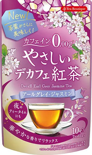 カフェインが苦手な方にもうれしい、 おいしい紅茶をカフェイン0.00gで楽しめるデカフェシリーズ。 カフェイン0.00g*でも、味と香りにこだわった「やさしいデカフェ紅茶」シリーズ。 爽やかな味わいのアールグレイに、ふんわりとしたジャスミンの香りを加えました。 夜でも気にせずティータイムを楽しみたい方、カフェインが苦手な女性やお子様にもおすすめです。 デカフェとは…「デカフェ」とはカフェインを含んだ茶葉から、できる限りカフェインを取り除いたもの。「やさしいデカフェ」シリーズは、「超臨界二酸化炭素抽出法」という方法で、カフェインを除去しています。 *カフェイン0.00gとは浸出液100ml当たりの数値です 【やさしいデカフェ】 カフェイン0.00g*でもきちんと味と香りにこだわった、“やさしいデカフェ紅茶”シリーズ。 「時間を気にせず、おいしい紅茶を楽しんでほしい」との想いから開発し、発売から10年を迎える事ができました。おいしさを追求し、セイロンティーをベースとした多くのフレーバーを発売。今後とも様々なシーンで楽しめるデカフェ紅茶をお届けしてまいります。