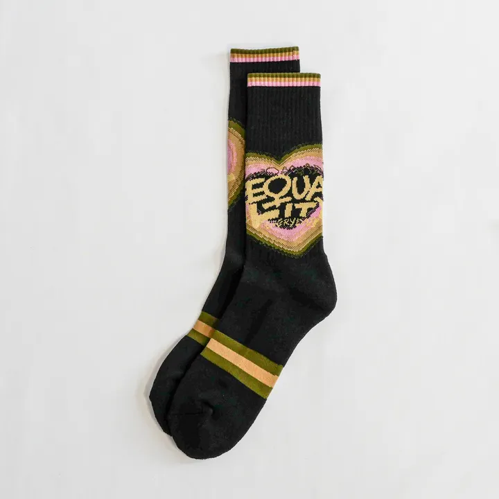 1920年代のParis、狂騒の時代。 時代を生きたシモーヌ・ド・ボーヴォワールを描いた1足です。 シモーヌは、1970年代に人工妊娠中絶の合法化を求める運動をはじめとする女性解放運動 (MLF)に加わり、『レ・タン・モデルヌ』、『フェミニズム問題(フランス語版)』などを通して運動を牽引しました。 女にならなくてならない現実、馬鹿げた女性問題、人はみな同じだと訴えた。 女性問題はバカげたことなのか。 WOMEN DEMAND EQUALITY(女性は平等を要求する) スローガンを掲げたメッセージソックスです。