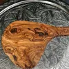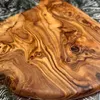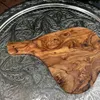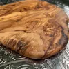 サイズ:約30×21×厚み1.0cm 重さ476g *持ち手のついた変形ボード 個性ある形が面白さを引き出します。 角は丁寧に丸くカービングされています。 *長い年月の間に厳しい自然と共に何百年も育った複雑な木目が特徴「大自然のアート」です。このご時世で家の中に「生きる力」を与えてくれます。とても硬質な木質で、傷つきにくく表面は滑らかで手に吸い付くような素晴らしい感触です。 *オリーブの木は自然な抗菌作用があり、カビにも強く、衝撃に強く耐久性もあるので古くからヨーロッパでキッチン用品として使われてきました。 *ギフト、お祝い、引き出物などにも人気があります。ギフト包装も承ります。 *オリーブの一枚板から取った無垢のまな板です。自然の形を生かしているので、そのままお皿としてテーブルに出しても味わいがあって素敵です。温もりのある和食器や、カラフルな北欧の器などとの相性もよく、多彩なテーブルコーディネイトをお楽しみ頂けます。オードブルやチーズ、フルーツを盛り付けてそのままダイニングへ、ワインを片手に「かっこいい」テーブルを演出します。オリーブの木の素材力は抜群、インスタ映えは間違いなしです! *天然木材の持つ風合いと手触り、一つとして同じ木目や色が存在しない、世界で唯一無二な存在感を満喫して頂けます。木目や節、色合いなどが一点一点異なります。 *使い込まなくても、新品状態から味があり、使い込むほどに質感の深みが増していきます。 *キッチン以外でも素材力があるのでアクセサリーや石、陶器、さまざまなディスプレイにもすばらしい「ステージ」を演出します。 *写真で細かくご案内していますが、400年以上の古木という材質上、ご案内するボードは一点一点、異なる木目や節があり、色も各々違います。また、細かい傷や表面の微妙な凹凸、磨いた跡や虫食いの跡などがある場合もございます。これらは不良品扱いとはなりませんので、予めご理解の上お買い求めください。 #オリーブの木#天然素材#木製#まな板#おうちカフェ#おうちごはん#料理好き