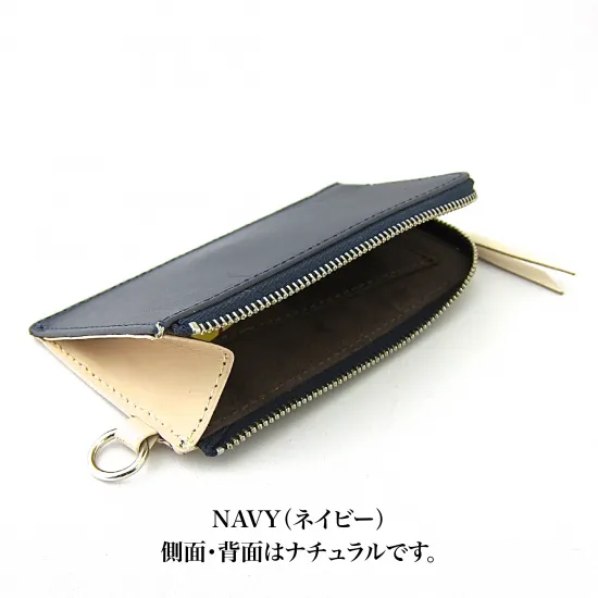 フラグメントケース/ミニウォレット L字ファスナー イタリア製 バケッタレザー NAVY/ NATURAL