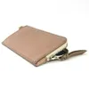 L字ファスナーのフラグメントケースです。スリム&コンパクトなミニマルサイズで、小さなバッグにもスッキリと収まります。大きなマチ付きなので中身は見やすく、出し入れも簡単です。外側に4つのカードポケットとサイドポケットを備えています。また内側にも名刺サイズのポケットを付けました。マチ部分に付いた丸カンに別売りのロングストラップを繋いで首から下げたり、バッグの持ち手に付けたり、シーンによってはミニウォレットやパスケースとしても使える、キャッシュレス時代に便利なアイテム、通勤・通学にもとても重宝します。素材はイタリア・サンタクローチェ地方のタンナー:イルポンテ社のバケッタレザー、内側には鹿皮のように滑らかなマイクロファイバースエードを配色しました。エイジング(経年変化)を存分に楽しんでいただける逸品です。