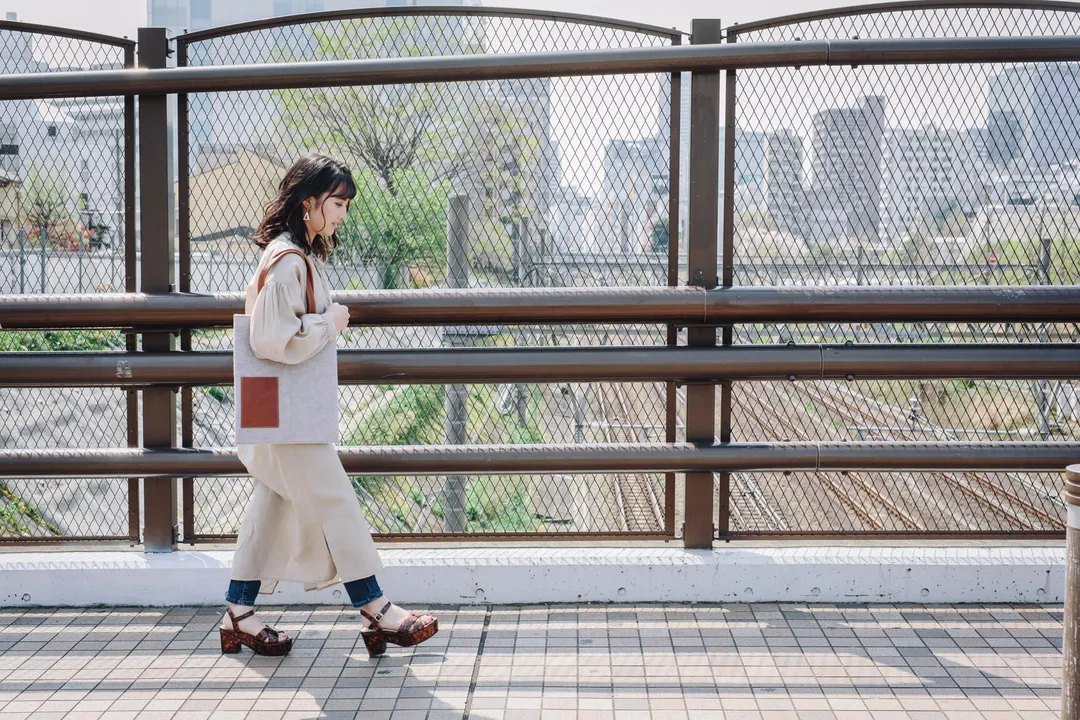 [recycle Felt = 再生フェルト] × [genuine Leather = 国産本革] ペットボトルを回収してつくられた独自開発の再生フェルト、 つかいこむほどに経年変化する国産の本ヌメ革、 普段は交わりあうことのないふたつの“環境素材”。 味わい、温かみ、軽さ、丈夫さ、弾力性、耐久性、防虫性、形状安定性… お互いの素材の良さを引き出し、上手く調和させることで、オン・オフを問わず、 愛着をもって長く使っていただける新しいスタイルのアップサイクルプロダクツ。 FelLe®(フェルレ)は、そんな想いを込めた新しいエコプロダクトブランドです。 ――― 商品説明 ――― A4サイズ収納の実用性のある手軽な使い勝手のマチなしトートバッグ ・A4サイズのファイルが縦に入る大きさのオンオフ使い可能なマチなしトートバッグ ・厚手の再生フェルト素材で、中身を守る機能性に加え、大きさの割に軽量です。 ・外側のポケットは、スマホや電子カードの収納に便利 ・内側には長財布が縦に入る大きめサイズのファスナー付きポケットも配置しています。 ・持ち手とポケットには本革を使用し、経年変化を味わえます。 ・フェルト生地は、あえてムラ感を出したスモーキーカラーとなる特殊製造オリジナル生地。 素材: 再生ポリエステル 本革 サイズ: 約W330×H280×D25㎜(持ち手:約530㎜) 重さ: 約250kg カラー展開: 7色 ――― お買い上げ前にお読みください ――― ・本革を使用している部分には、本革特有の多少の表情のムラや傷、手触りの違い等がありますが、天然本革の一般的な特長であり損傷ではありません。 また、日光や外気や使用時の手触り等により、経年変化を起こし、色が濃くなることがあります。 ・生地のフェルトの素材の性質上、摩擦により毛玉ができることがありますが、ハサミなどでカットしてください。