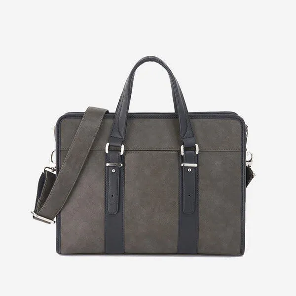 レザーテイスト ビジネスバッグ グレー / ブラック
