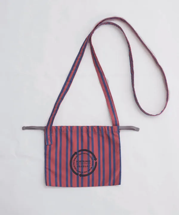 カード決済やスマホ決済にも便利な 小さなサコッシュ 同シリーズのバッグ[ BEACH ]を折りたたんで[ FLOAT ]に収納すればお買い物の際にサッと取り出せて便利です 『ZERO WASTE DESIGN』採用、[ FLOAT ]は[ BEACH ]を裁断する際に出る持ち手部分の生地ロスを なるべくなくす事も考えて企画しています