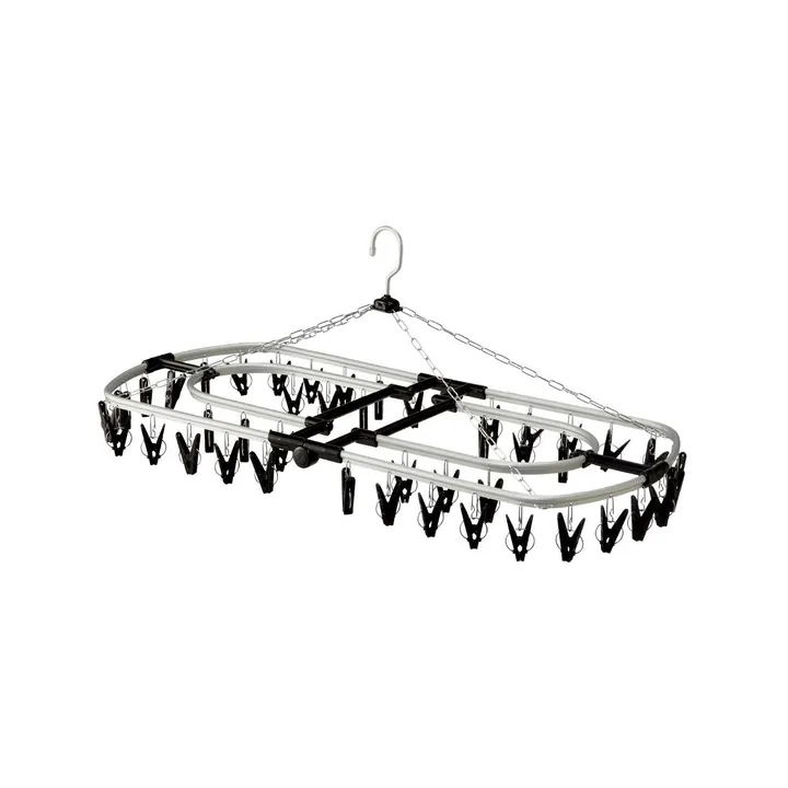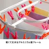 ●山折り式●軽くて丈夫、欲しい機能を満たした適度なサイズの44ピンチ●収納時にフックが曲げられる便利な回転アルミフック●二重に配置されたピンチで、隠し干しOK●ねじれやたわみに強いリブ付きのアルミフレーム、ピンチ取付け部も金属製(アルミ製リブ+金属製リング)で頑丈●取り替え用ピンチをワンタッチで取り付けできる(工業所有権取得済)を採用